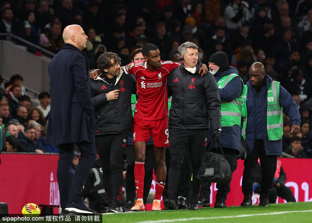 上周末联赛,利物浦客场2-1热刺,伊萨克在半场时替换布拉德利登场,在第56分钟接到维尔茨助攻取得进球,但他在进球时被范德芬铲伤,随后被替换下场。